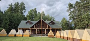 Ve stanech s podsadou, zázemí tvoří velký kanadský srub s kuchyní, jídelnou, pokoji, kde je možné se schovat před nepřízní počasí nebo si jen tak pustit pohádku. Toalety a sprchy běžného typu, voda z vlastní studny.